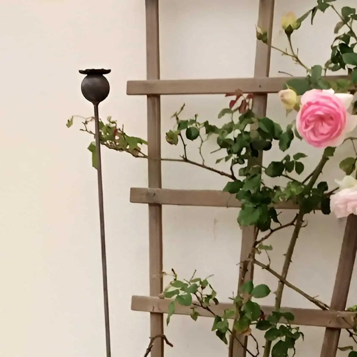 Voici un tuteur en métal rouillé à la fois pratique et très décoratif.