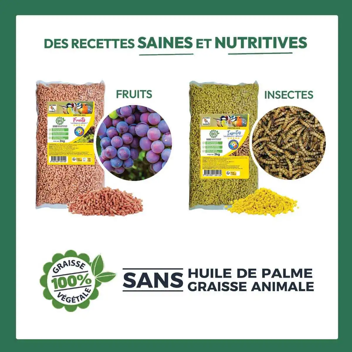 Véritable concentré d’énergie, elles offrent à vos visiteurs à plumes tous les nutriments nécessaires pour surmonter l’hiver, se régénérer au printemps et bien grandir à la belle saison.