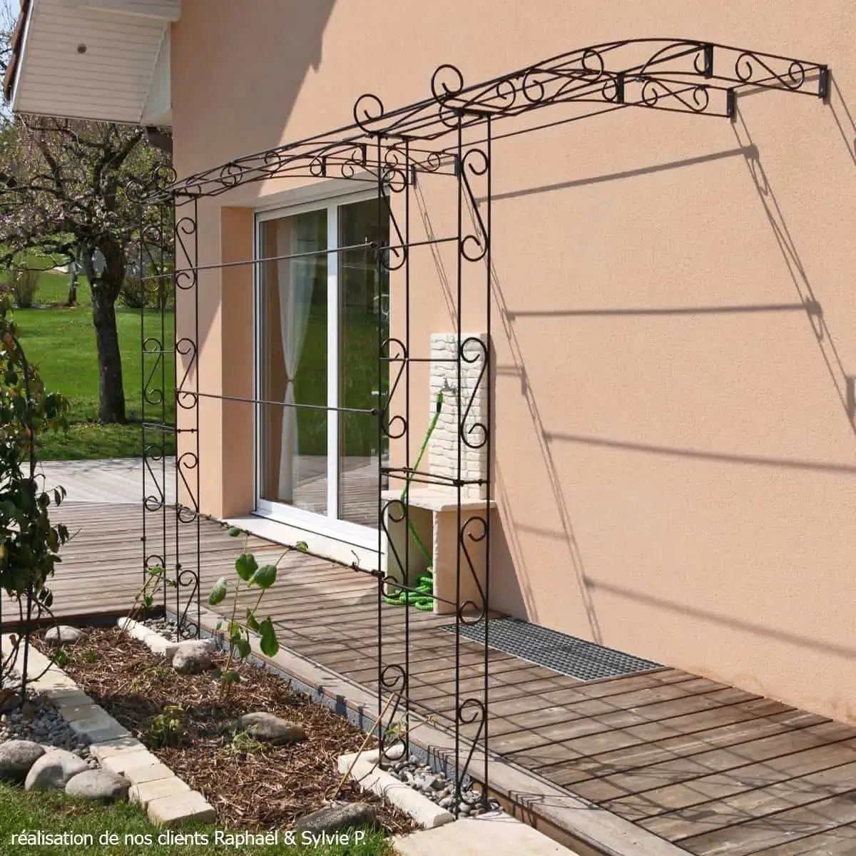 Pergola adossée en fer Très beau rendu. Élégante et facile à installer.
