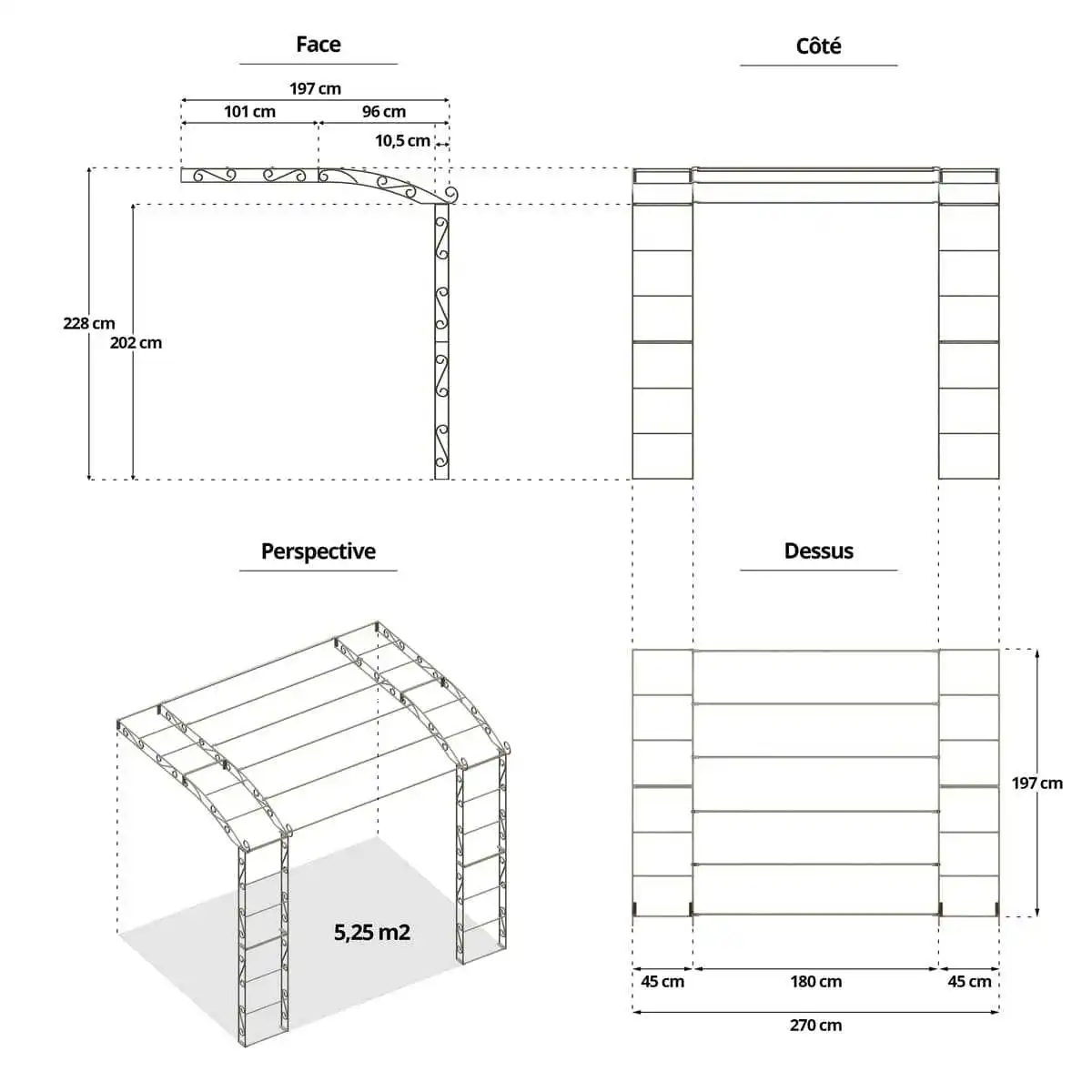 Pergola adossée en fer tres bon materiel ,solide ;elegant, nous sommes tres satisfaits