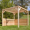 La pergola est modulable grâce à des demi-panneaux de bois que vous pouvez placer sur les côtés pour fermer plus ou moins la structure.