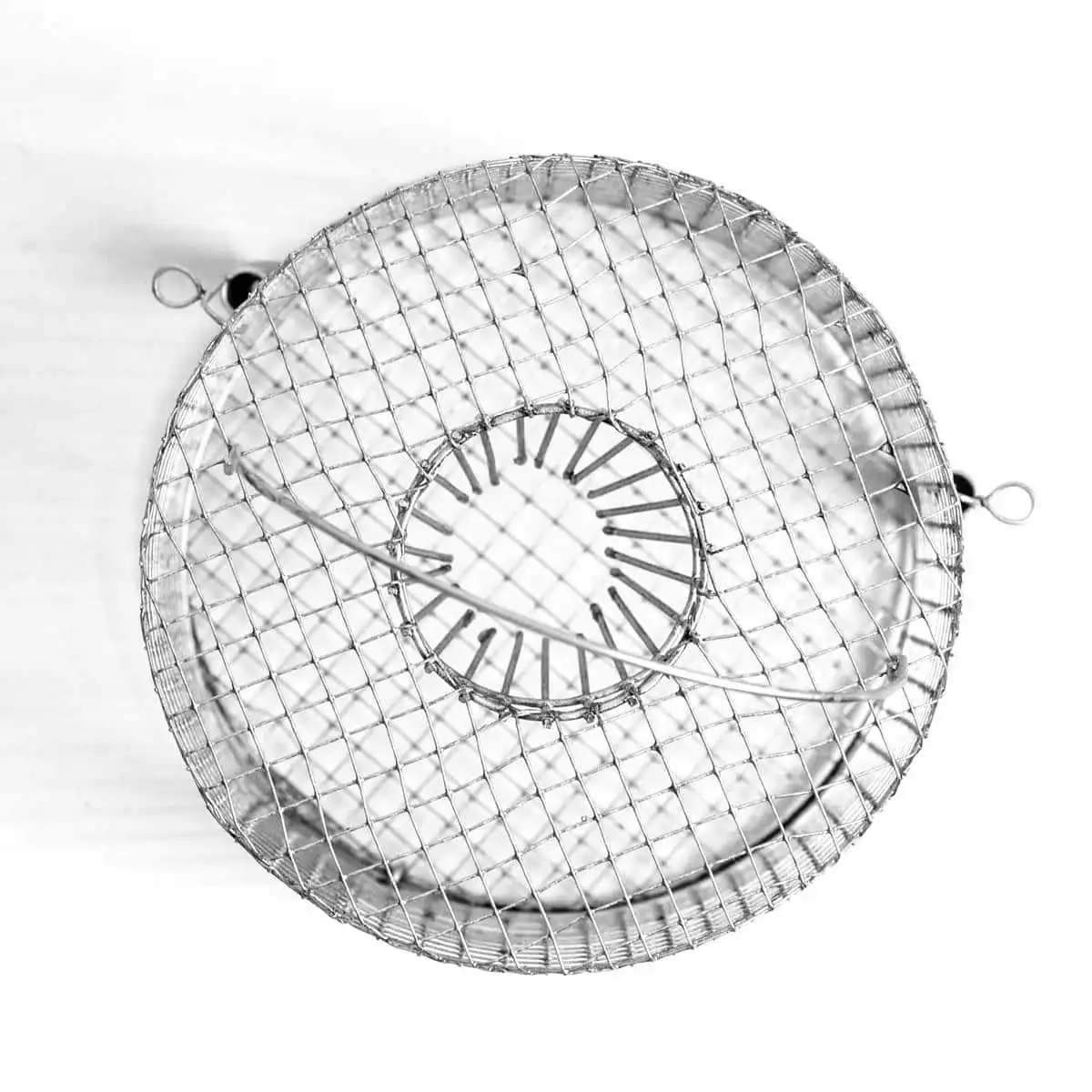 Fabriquée en acier zingué, la cage ne blesse pas les souris. L'animal est attiré par un appât (pain, gâteau...) et passe par le trou anti-retour situé sur le haut de la nasse. Il se retrouve ainsi piégé dans la cage.