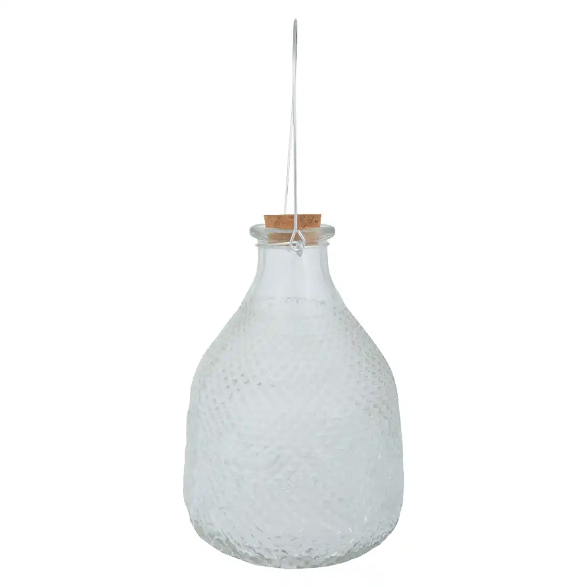 Conçu pour se fondre dans votre environnement, cet attrape-guêpes en verre se suspend facilement grâce à sa anse en métal. Vous pouvez l'installer où vous le souhaitez : sur une branche, un parasol, ou même au bord de votre table de jardin.