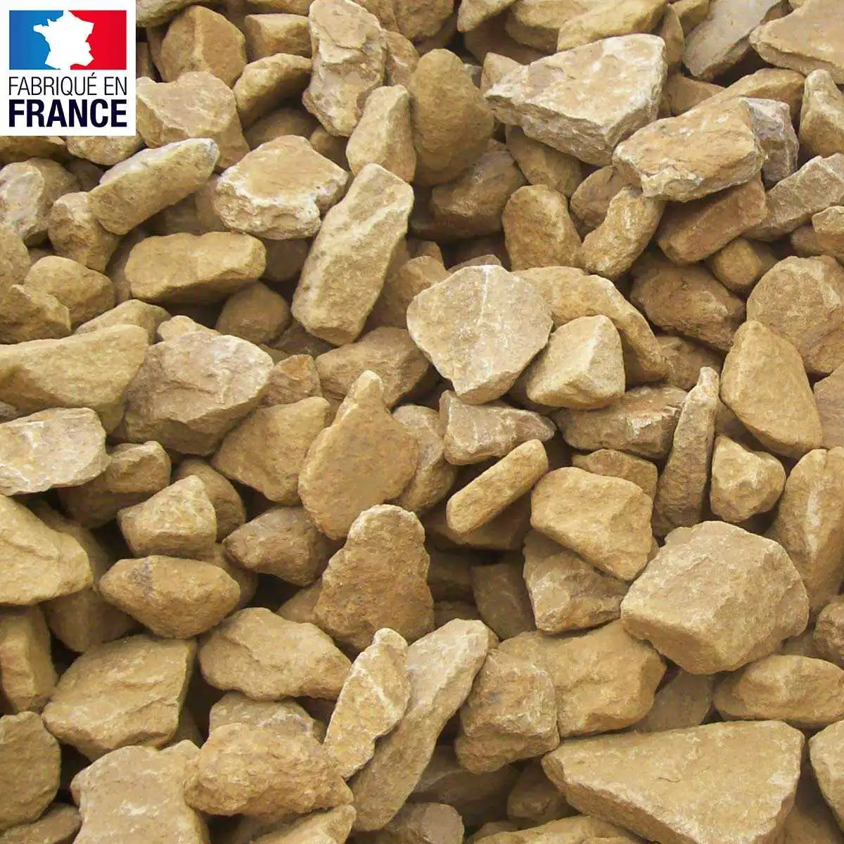 Roches concassées de couleur jaune, de provenance France. Pierres calcaires.