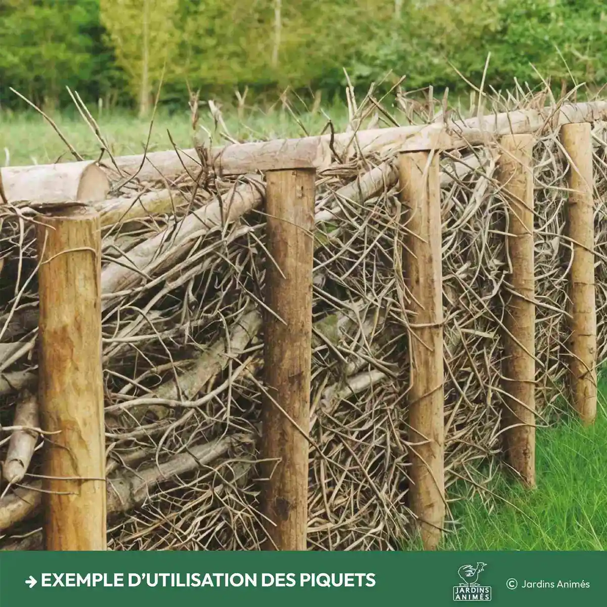 Parfaits pour structurer une haie sèche composée de branchages, ces poteaux offrent un ancrage solide et durable, tout en participant à la biodiversité du jardin.
