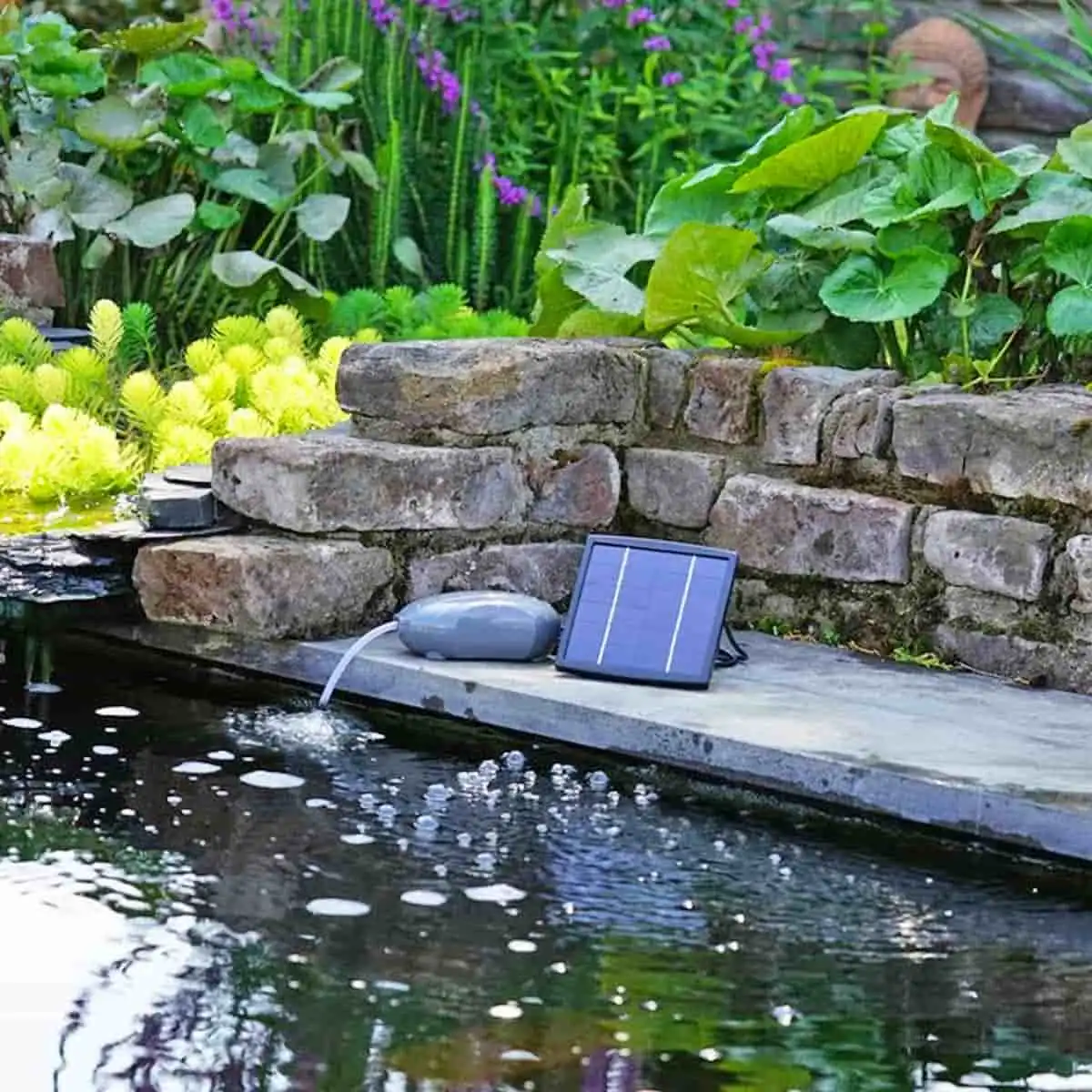 Pompe d'aération solaire pour bassin Fonctionne dès le moindre petit rayon de soleil. Très agréable de voir ces bulles dans l'eau, çà rend le bassin vivant.