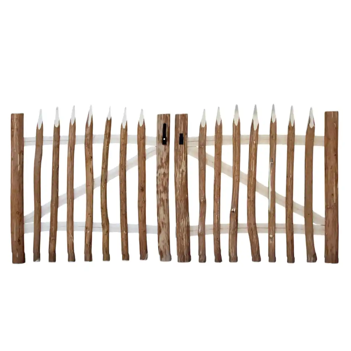 Paiements sécurisés Double portillon en bois de noisetier livré avec 2 gonds montés, 2 charnières à fixer et un crochet de fermeture.