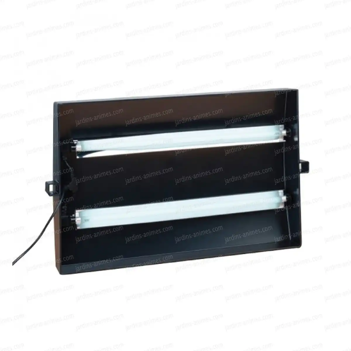 - Petit modèle : long. 50cm x larg. 20cm x haut. 45cm - 11 Watt - Grand modèle : long. 62cm x larg. 40cm x haut. 48cm - 2 x 24 Watt - Disponible en option : un tube fluorescent de rechange, à lumière T5 de 24W