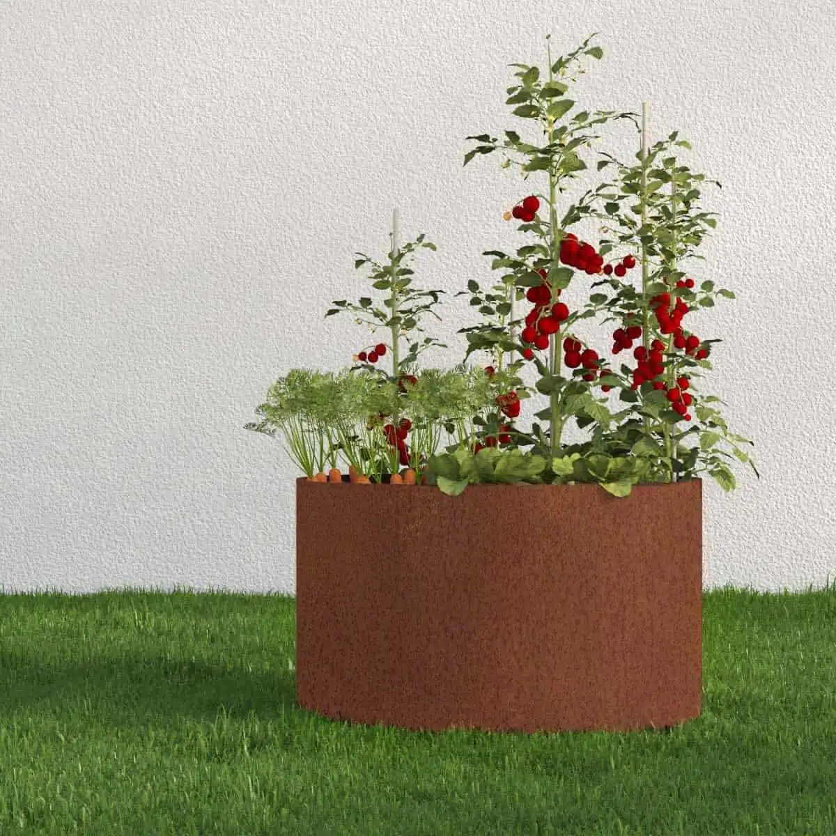 Très résistant, ce potager arrondi est fabriqué en acier corten. Livré brut, il prendra une jolie patine rouille au fil des semaines et des mois. L'acier corten est très résistant, il ne se déforme pas et ne nécessite aucun entretien.