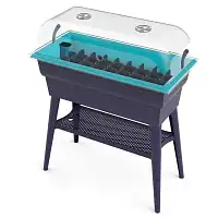 Potager sur pieds avec cloche à semis Calipso COMBI 40L - Turquoise Très bon matériel. Hauteur idéale et pieds solides. J'y ai planté mes fraisiers. Cloche bien haute et resistante. Très contente de mon achat.