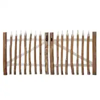 Portillon et poteaux en noisetier très bon produit un aspect champêtre réussi les charnières tiennent bien dans le temps prévoir la visserie adapté à votre support. après une année rien n'a bougé! parfait