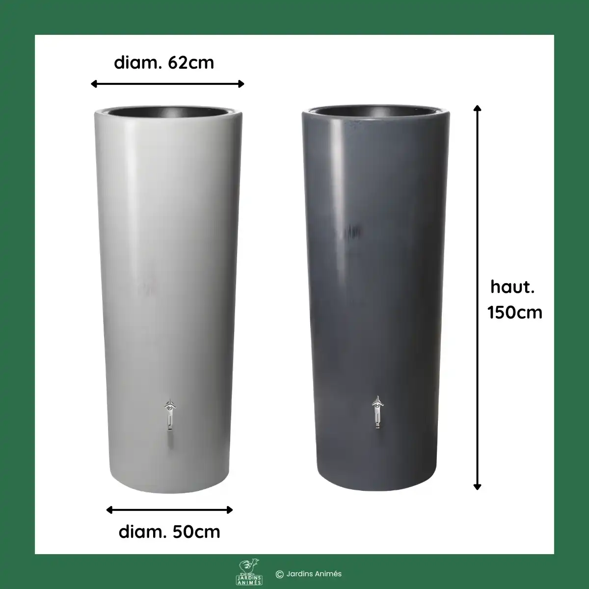 Récupérateur eau de pluie 350L avec bac à plantes Stone - H.150 x D.62cm