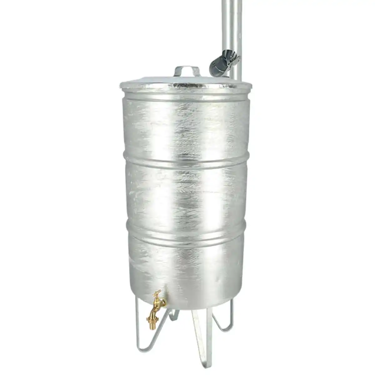 Ce réservoir d'eau de pluie est fabriqué en acier zingué.