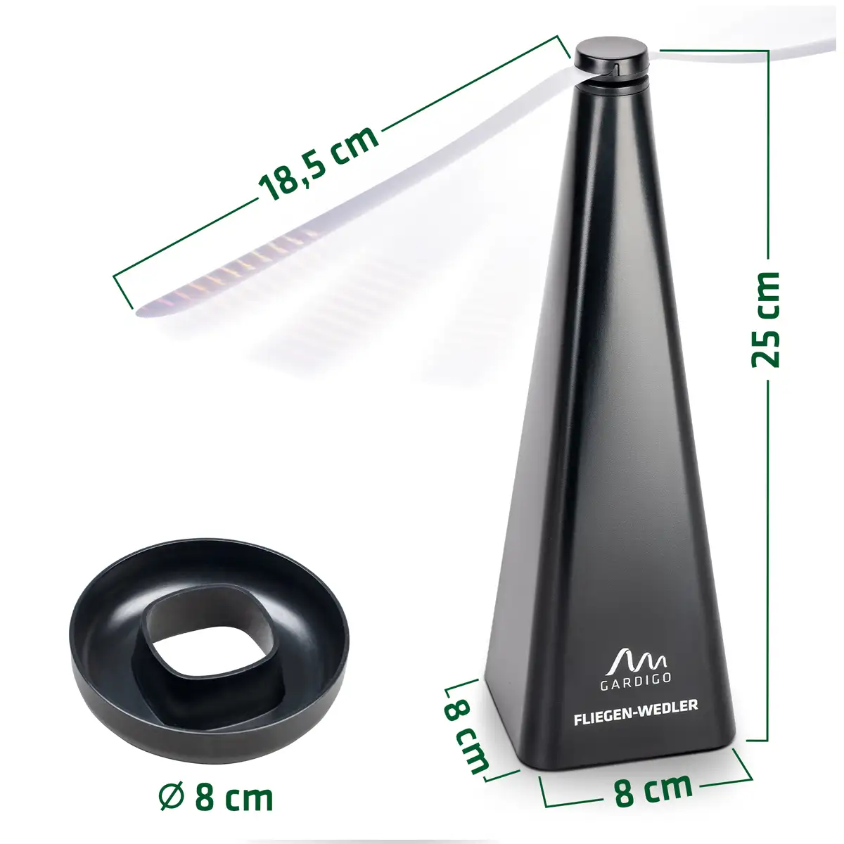 Que ce soit lors d'un repas en plein air ou dans votre cuisine, vous n'avez plus à subir la présence indésirable des mouches et des guêpes. Grâce à son mouvement rotatif continu, il agit comme un repoussant mouche permanent.