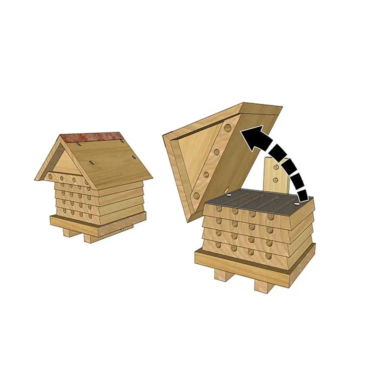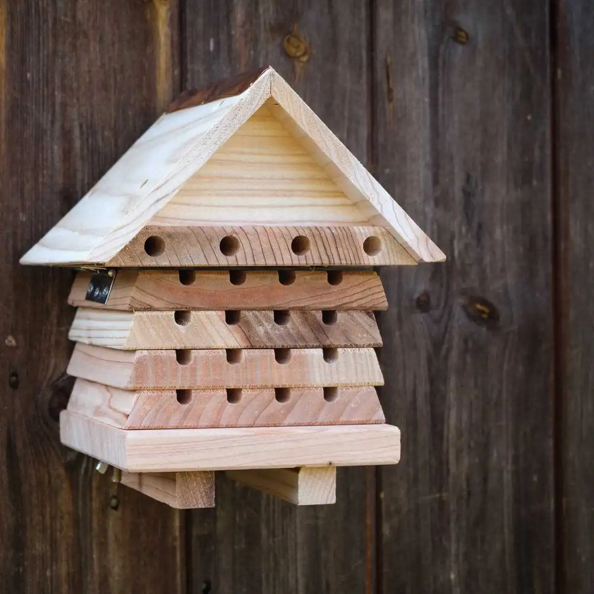 La taille des trous de cet habitat est précisément étudiée pour attirer les abeilles qui ne forment pas de colonie, comme l'abeille maçonne rouge, l'abeille coupeuse de feuilles et d'autres abeilles solitaires.