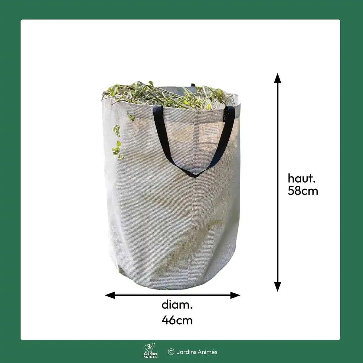 Le sac à déchets 120L est fabriqué artisanalement dans un atelier normand, à partir de chutes industrielles de toiles d’ombrage. Ce matériau, initialement conçu pour les installations extérieures, est connu pour supporter des charges lourdes et pour résister aux perforations et aux UV. Une fois revalorisé, il devient un textile technique idéal pour un sac de jardin conçu pour durer. Cette approche de l'upcycling évite le gaspillage de matières premières et réduit d’autant les déchets envoyés en décharge.