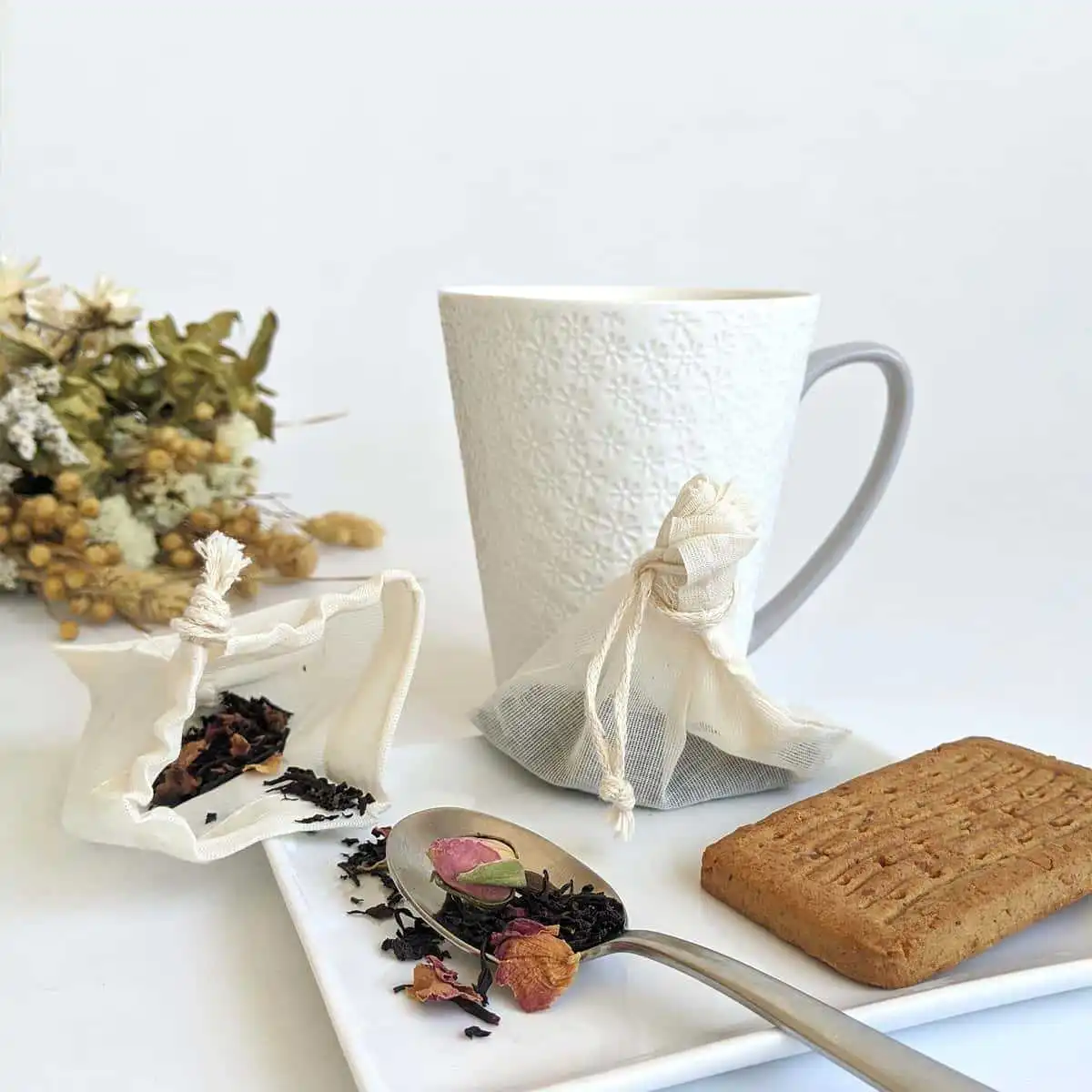 Simple d'utilisation, ces petits sachets en coton sont à remplir de thé ou de tisane pour ensuite être plongés dans votre tasse.