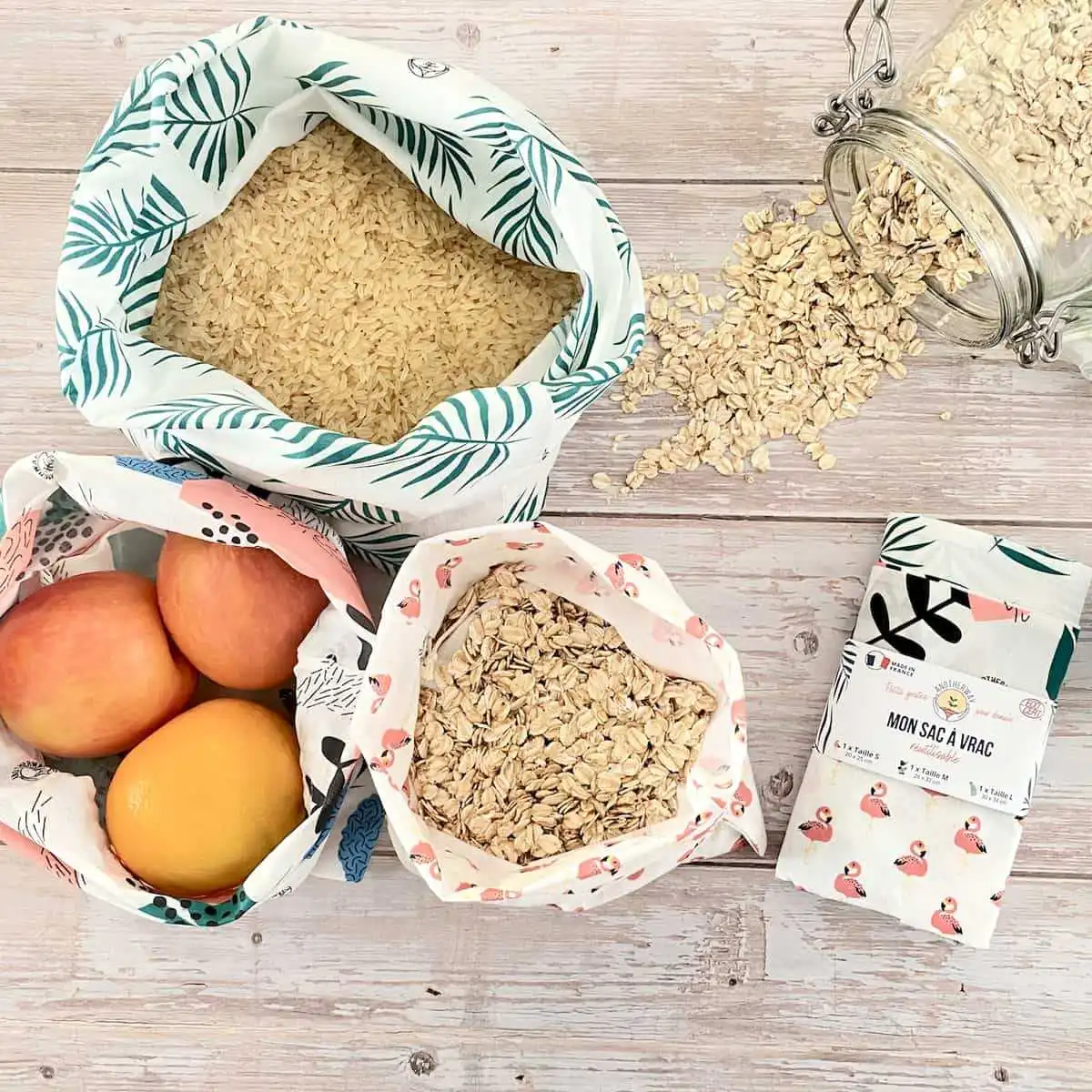 3 sacs à vrac en tissu bio, fabrication française