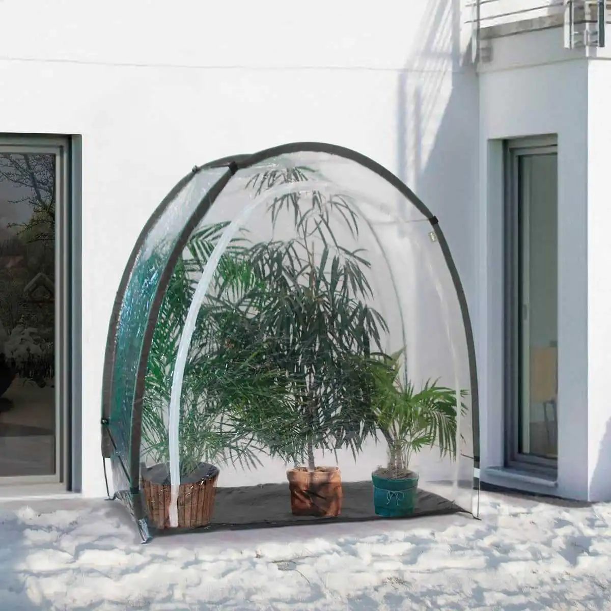 Cette mini serre transparente est idéale pour hiverner les plantes en pot ou en bac, notamment sur un balcon.