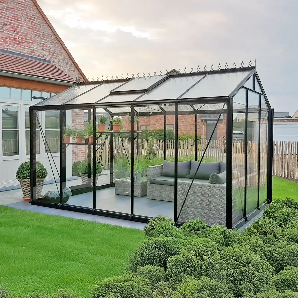 Serre de jardin Prestige ACD rétro Laqué Noir Déjà 8 ans que je profite de ce magnifique "jardin 4 saisons". La serre est aussi pimpante qu'au 1er jour!