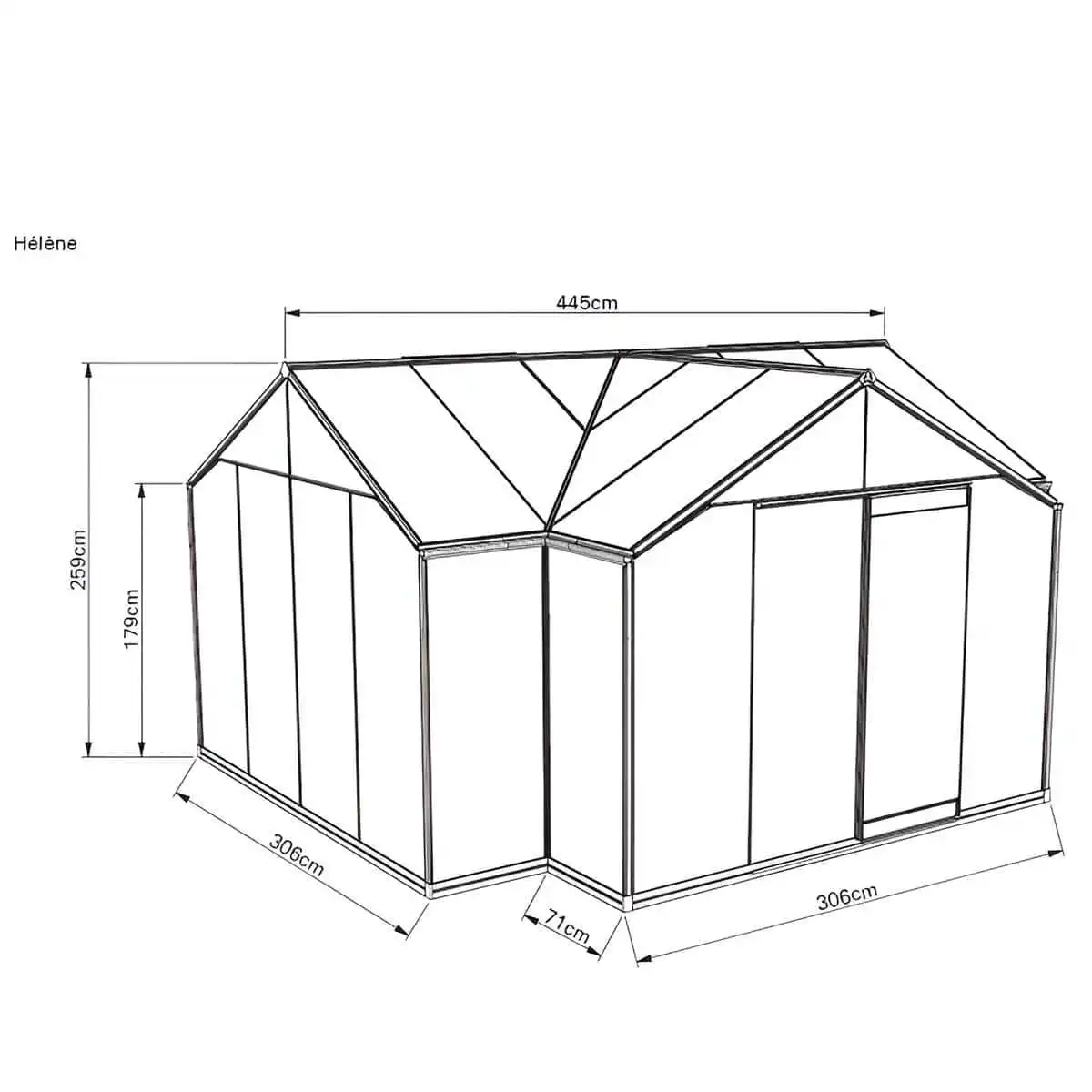 haute, elle qui dépasse le niveau de la gouttière. Cette grande ouverture facilite la passage d'une brouette et le déplacement de vos plantes volumineuses. - Structure en aluminium laquée
