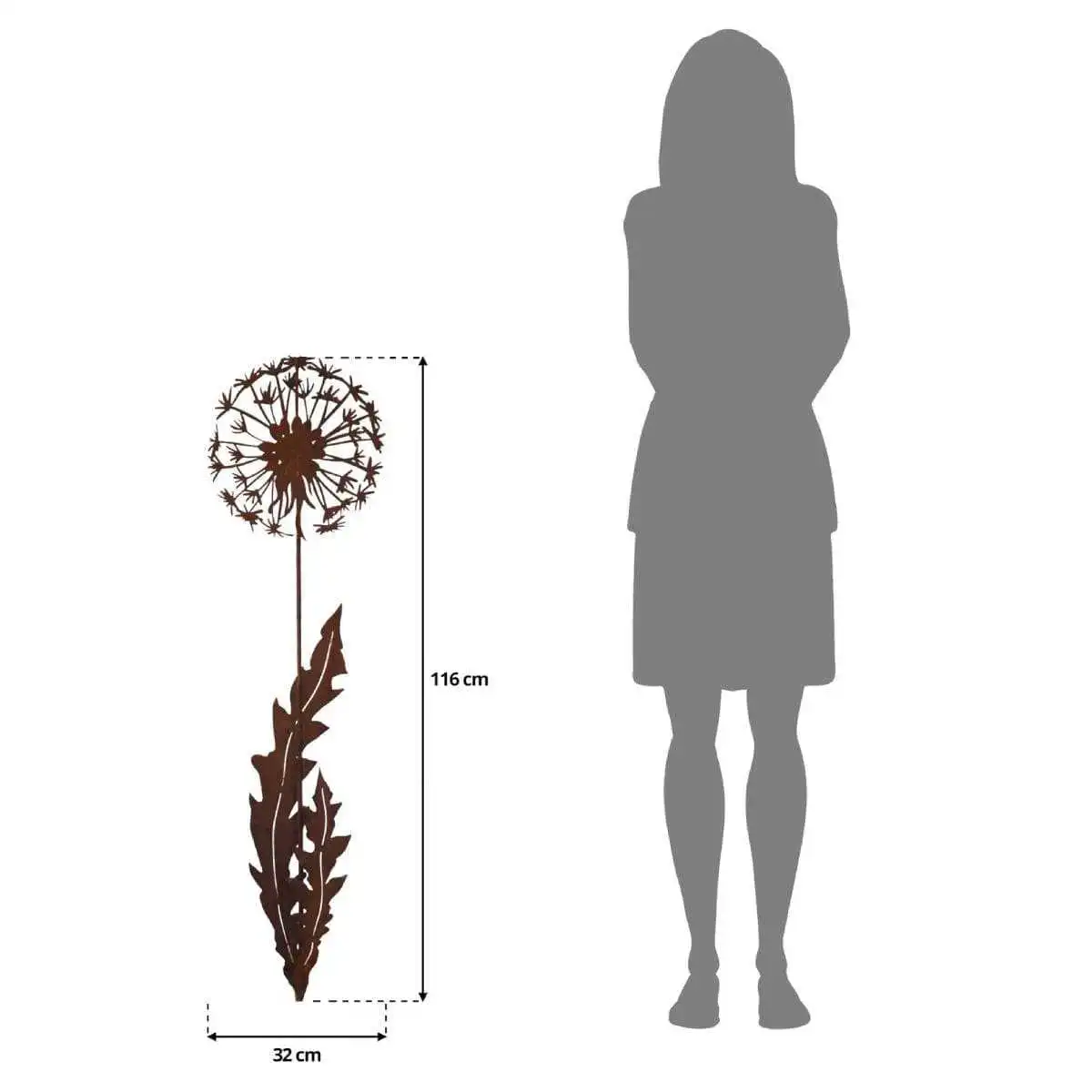Voici une jolie silhouette fabriquée en acier rouillé. Ce pissenlit de 116 cm de hauteur apporte une touche décorative au jardin.