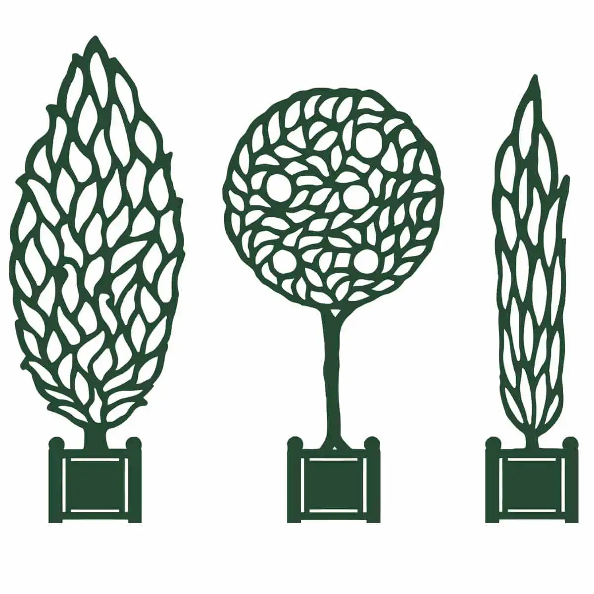 Utilisés en décoration ou en tant que supports pour vos plantes grimpantes, ces treillages aux motifs d'arbres (au choix : charme, cyprès, oranger) décoreront vos murs avec élégance.
