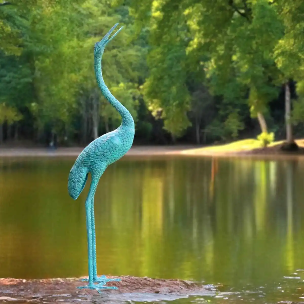 Voici une jolie statue de Grue en bronze, idéale pour décorer vos bassins et peut-être même dissuader les hérons trop gourmands !