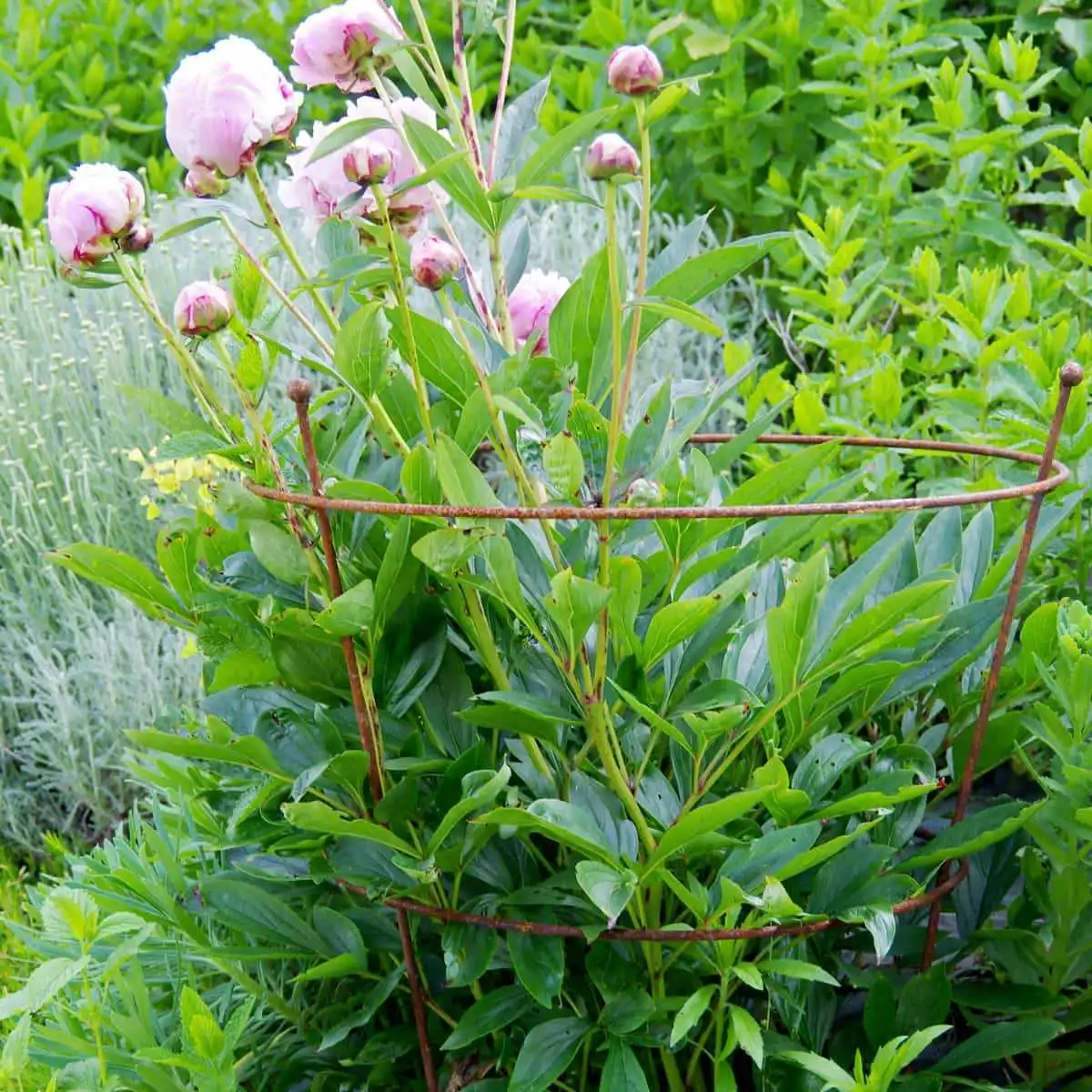 Installez le support au printemps pour que les tiges poussent à travers la structure. Les anneaux guideront leur croissance.
