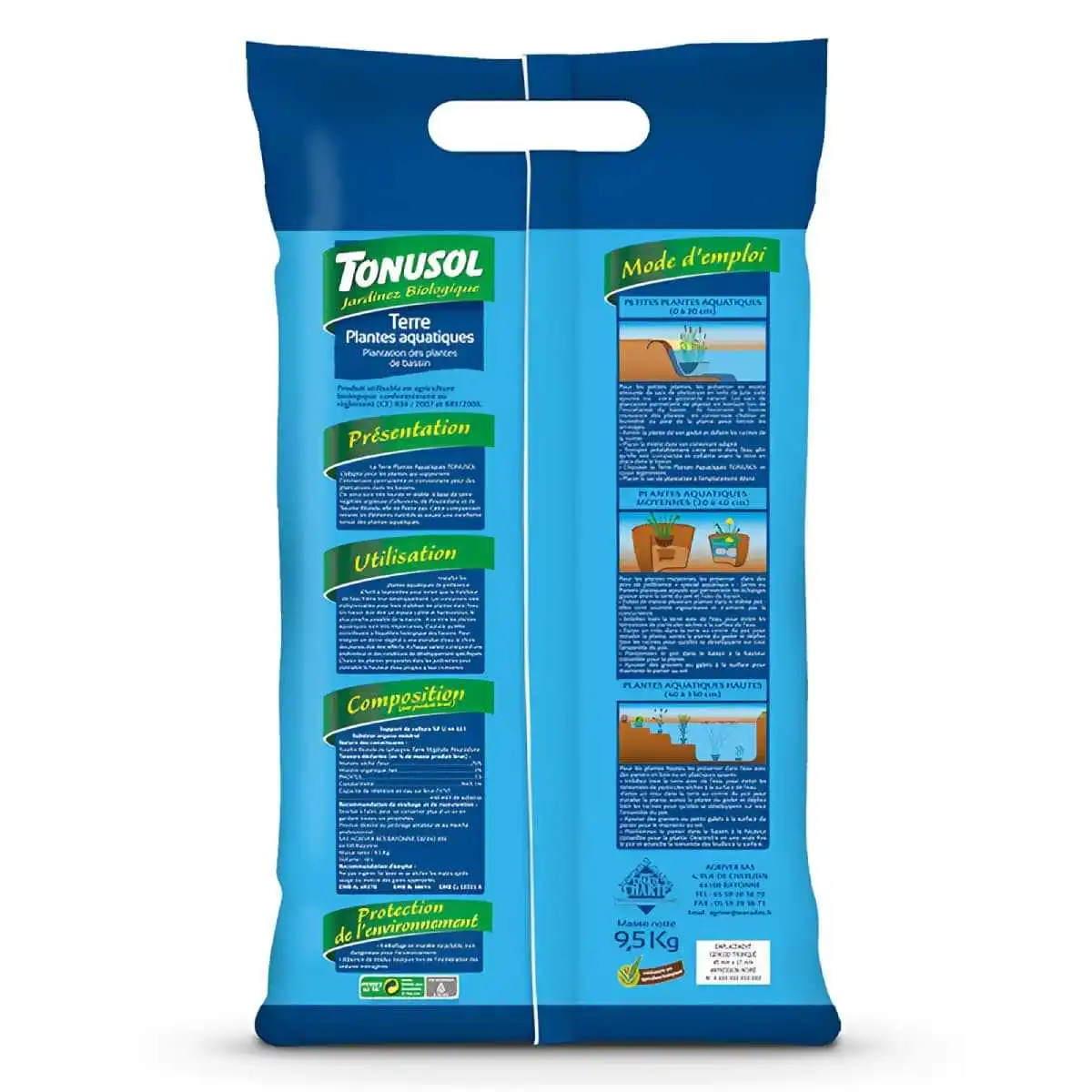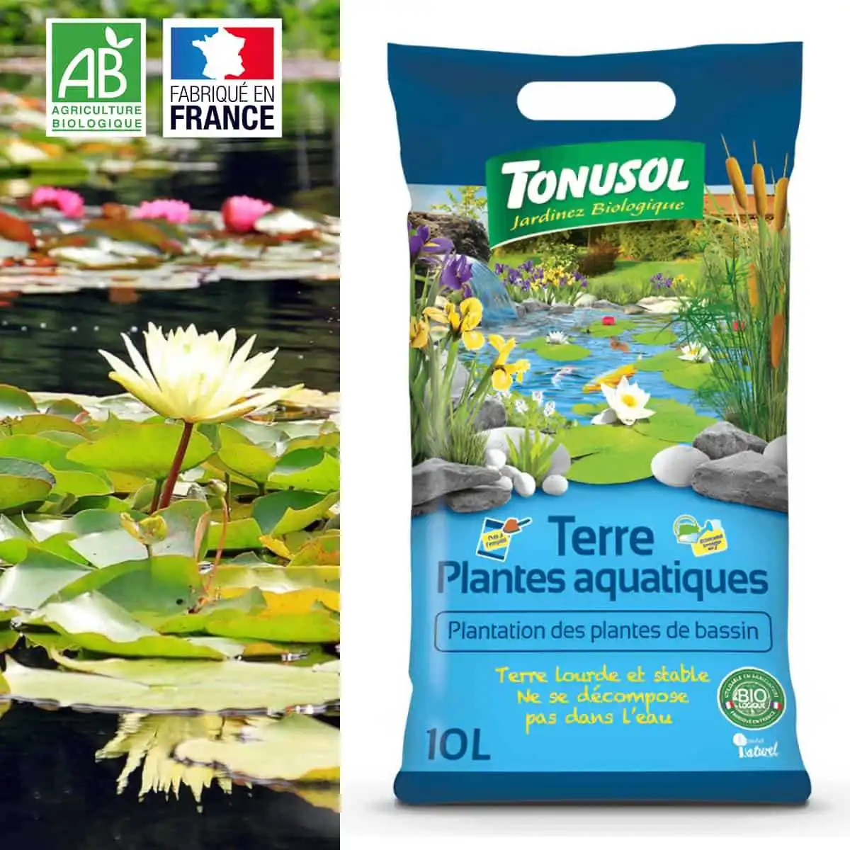 La Terre plantes aquatiques de Tonusol est livrée prête à l'emploi en sac de 10 litres. La formule de ce terreau est spécialement élaborée pour la plantation et le rempotage en bassin de toutes les espèces de plantes aquatiques : nénuphars, roseaux, prême du Japon, plantes tubulaires, etc.