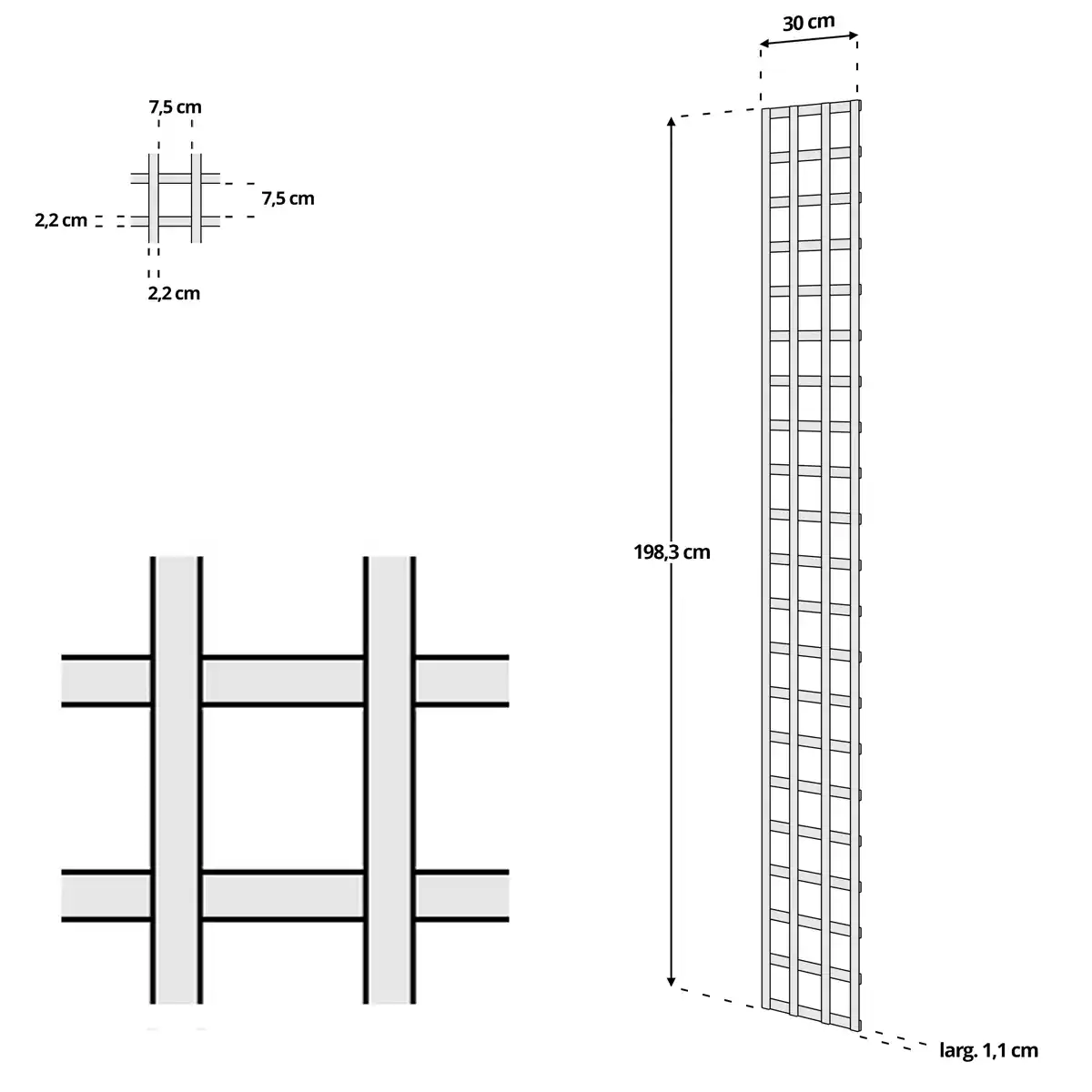 Treillage en bois Colonne maille Carrée 75mm L.2m x l.0,3m BLANC