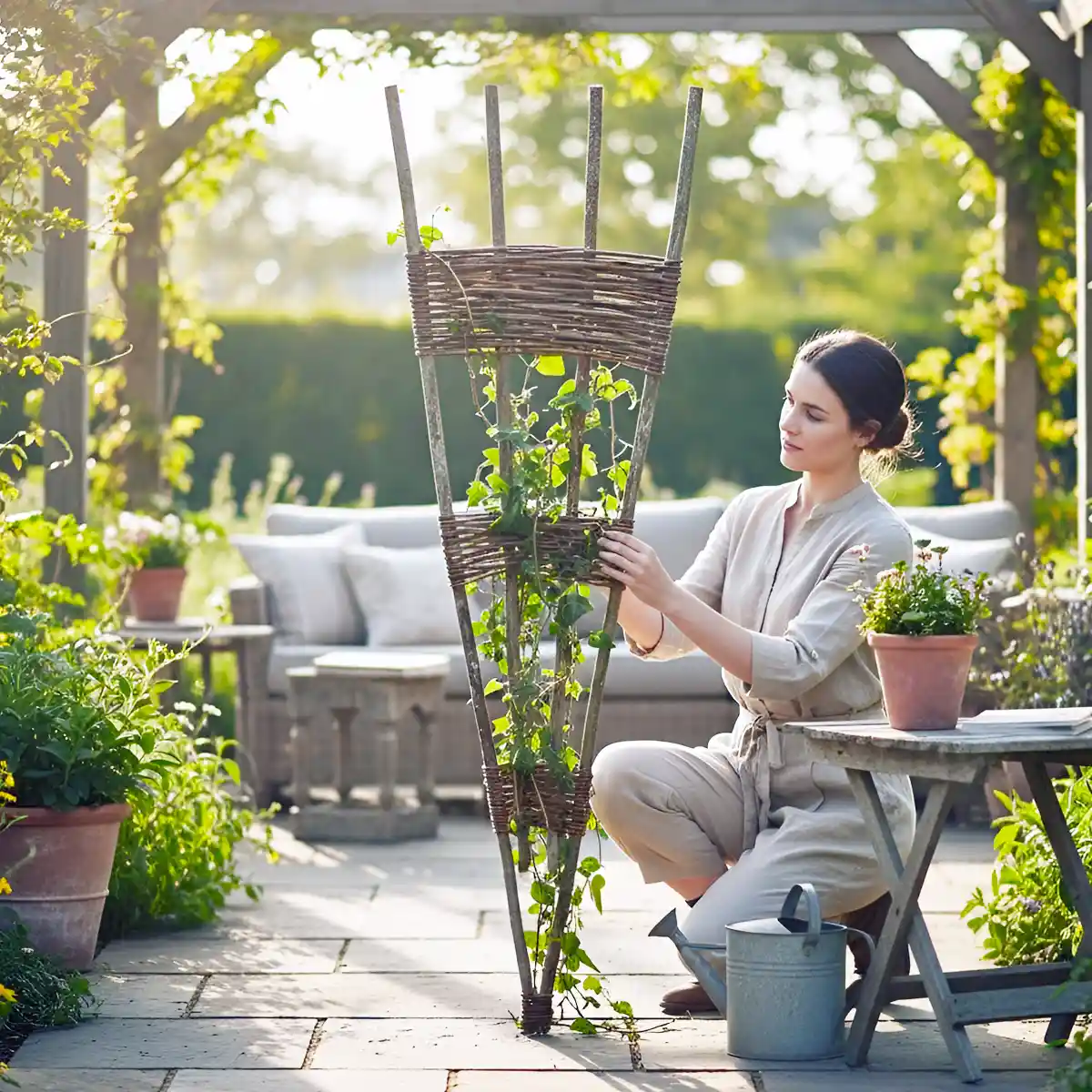 Voici un élégant support de forme triangulaire qui épaulera la croissance de vos plantes grimpantes.