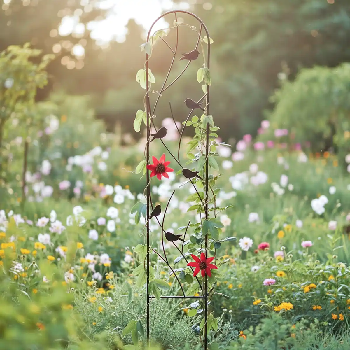 Avec ses fines volutes et ses jolis oiseaux en métal, ce treillis dégage une atmosphère poétique et naturelle. Il apporte une note de charme et de légèreté à votre décoration, tout en mettant en valeur vos plantes grimpantes. Lignes douces et silhouettes d'oiseaux créent un jeu visuel plein de finesse, parfait pour habiller un mur extérieur, une terrasse ou même un mur intérieur. Plus qu'un simple support, c'est un véritable objet déco qui fait entrer un peu de nature et de poésie dans votre quotidien.