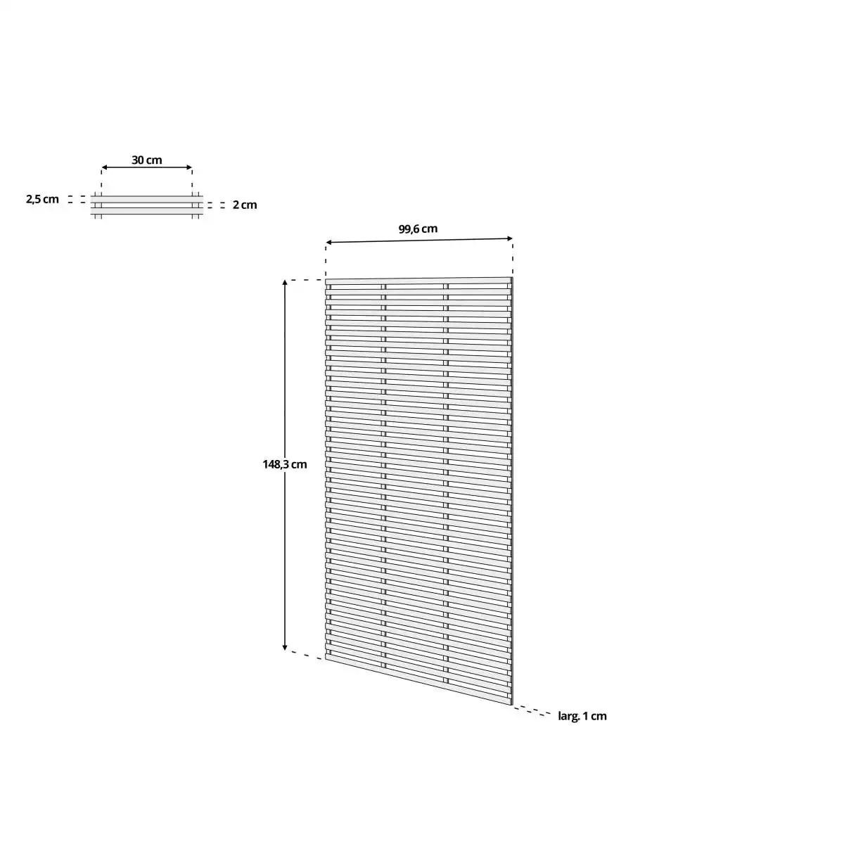 - Dimensions des lattes intérieures : largeur 25mm - Épaisseur 5mm