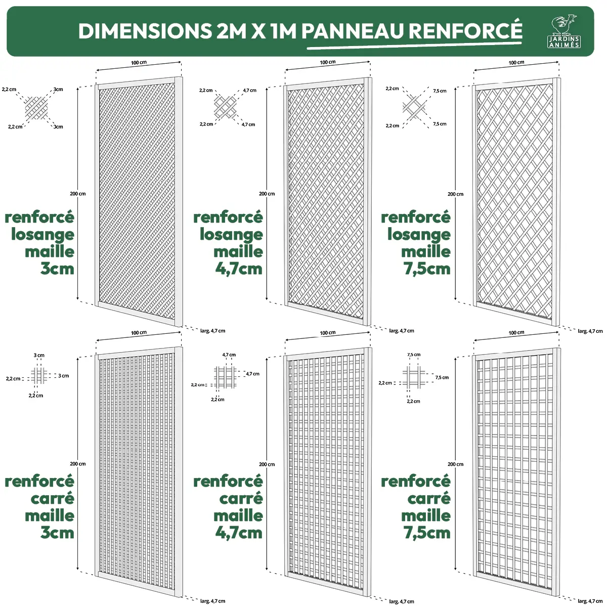 Treillage en bois renforcé L.2m x l.1m - blanc - Panneau rectangle, maille carrée 47mm Quelques infos utiles pour ceux qui envisagent d’acheter ce produit : il faut en commander au minimum deux, la livraison prend plus d’un mois, et le retour coûte environ 100 euros.