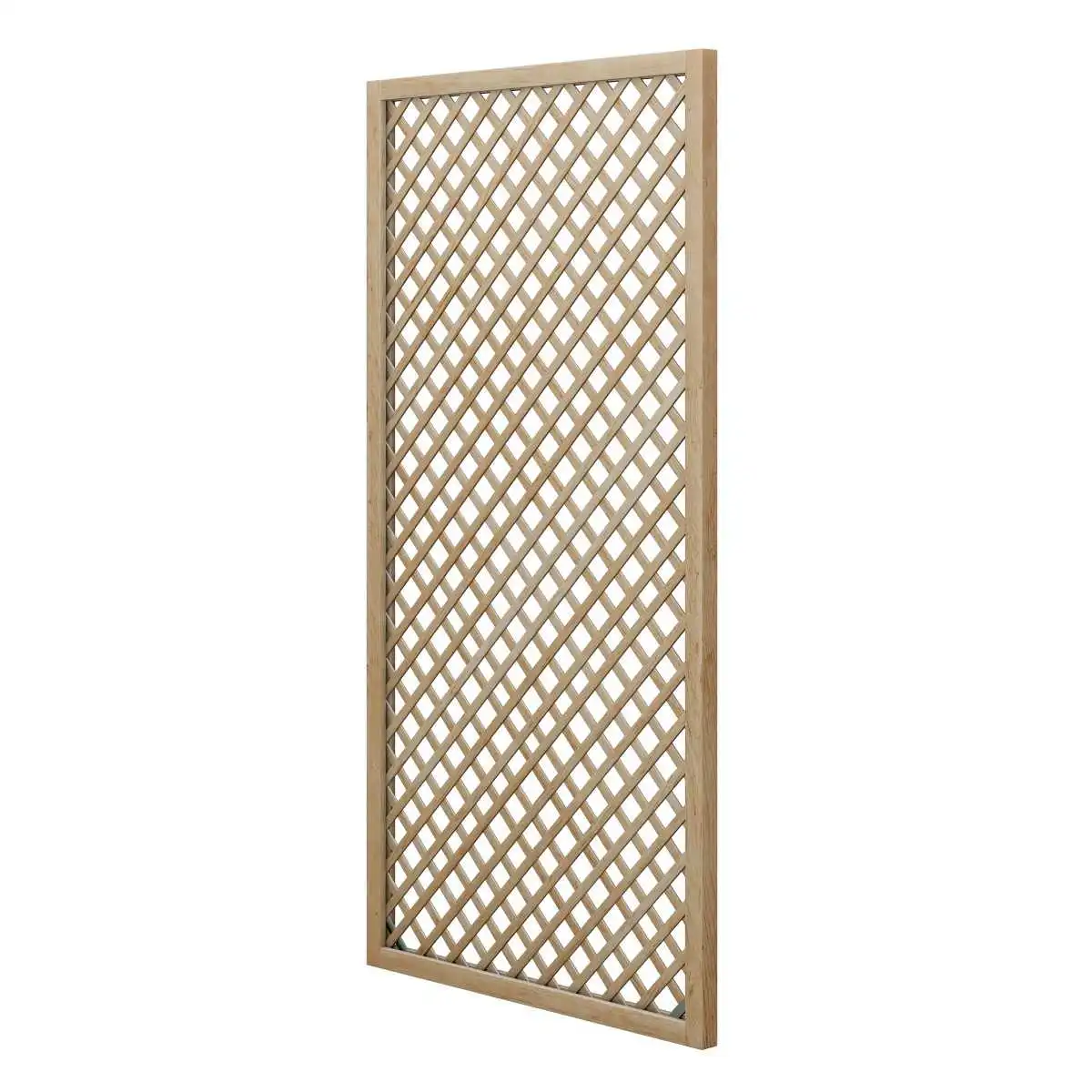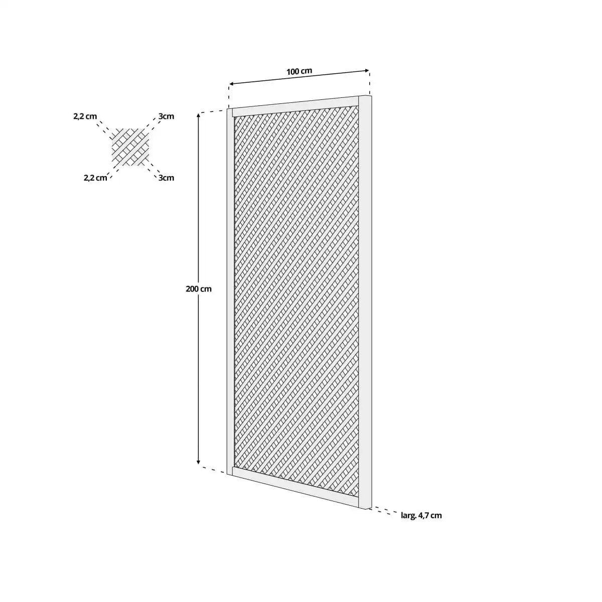 Ce treillis en bois bénéficie d'un cadre renforcé de 4,7cm d'épaisseur. Cela permet de l'utiliser aussi bien comme treillage pour plantes grimpantes que comme brise-vue ou séparation sur un balcon.