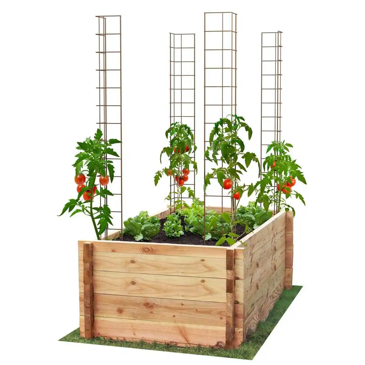 Ce tuteur s'installe aisément dans un bac rectangulaire ou un carré potager en bois ou en plastique.