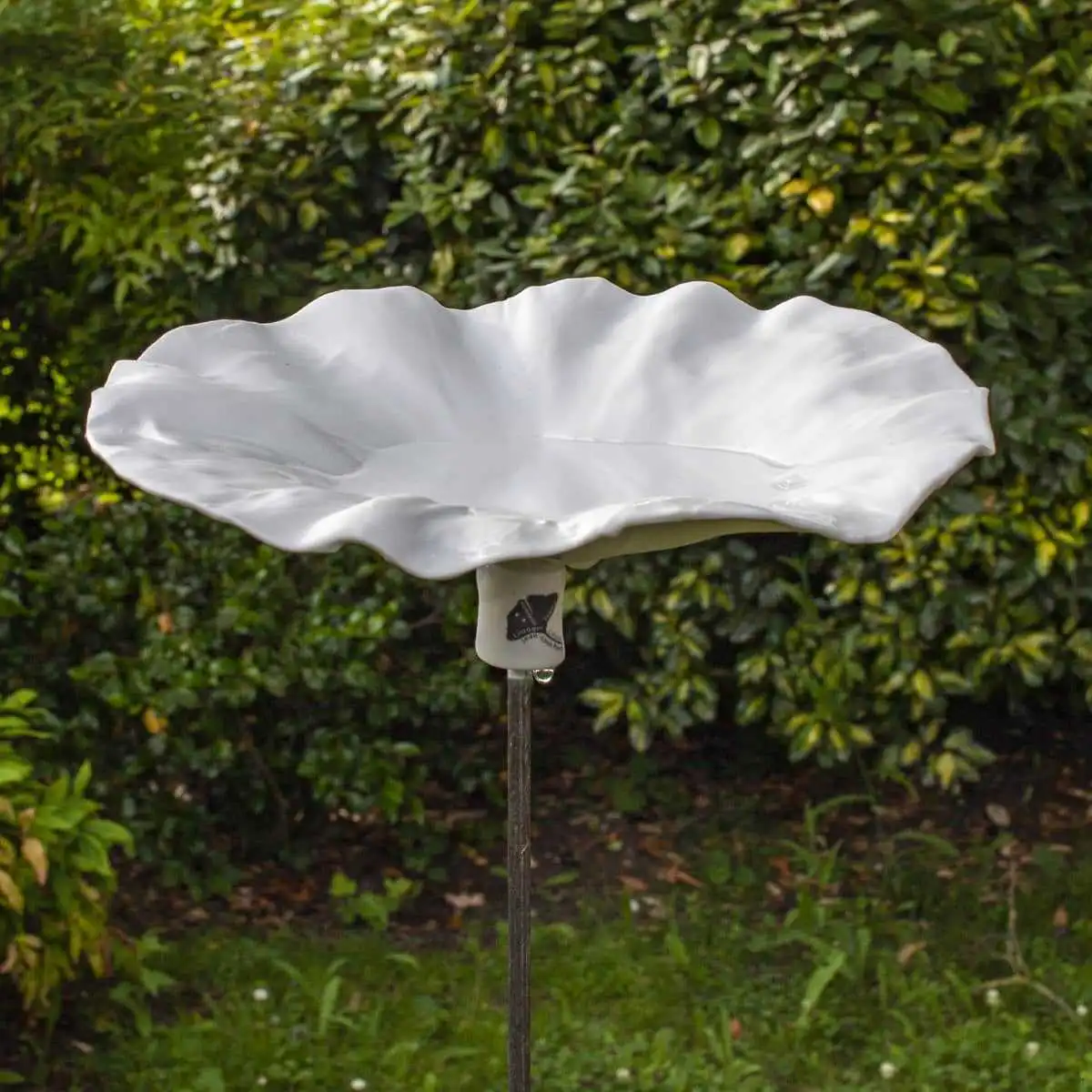 La coupelle est en réalité très petite, pas très creuse ; la tige en métal a rouillé au bout de 5 jours dehors, et finalement, ce n'est ni vraiment un objet déco, ni vraiment un point d'eau pour les oiseaux car on ne peut y mettre que l'équivalent d'un petit verre d'eau... J'avais commandé cet article pour l'anniversaire de mon mari, j'ai finalement renoncé.