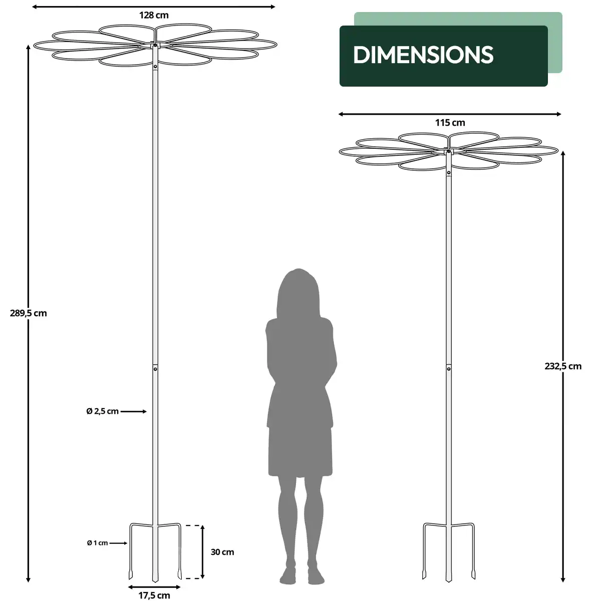 Tuteur Parapluie marguerite 10 pétales - H.320 x Diam.128cm Le seul site internet où j’ai trouvé un tuteur d’un aussi grand diamètre