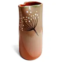 Ce beau vase décoratif est fabriqué en argile rouge par une artisane en Occitanie. D'une hauteur de 18 cm pour 7cm de diamètre, ce vase est entièrement décoré à la main. Son émail lui apporte une légère coloration, sur laquelle est peinte une fleur minimaliste.